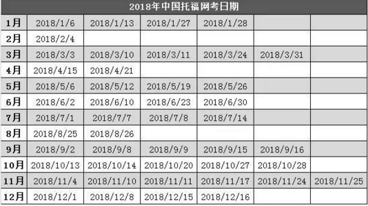 2018年托福考试时间汇总