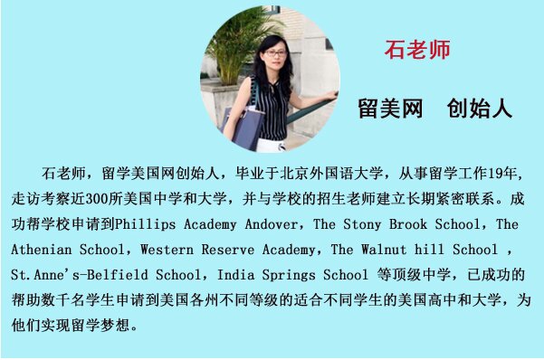 希望以上这些内容可以给正在申请或打算申请转学的同学和家长们提供一些帮助。我们留学美国网资深总监石老师有多年美高申请经验,她已经亲自走访了300多所美国学校,与许多学校的招生官结下了深厚的友情,她对申请美国学校的方方面面都有全面透彻的了解,如果您在帮助孩子申请转学时还有哪些疑问,欢迎咨询留学美国网,石老师很愿意给您解答并提供专业的建议和帮助。【本文系留美网原创,转载请注明出处!】