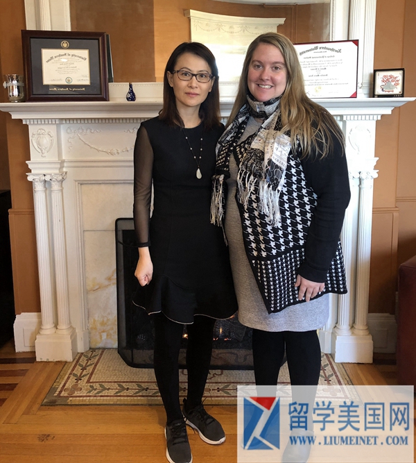 留学美国网石老师(左)每年都会亲自访问很多学校