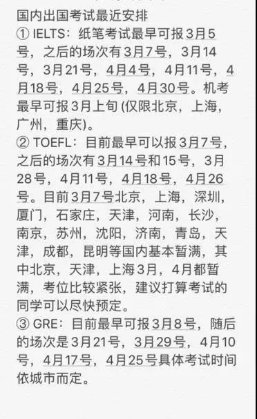 SSAT考试中国管理中心于1月28日宣布取消2月考试。目前除了SSAT,托福、雅思已经全部取消2月考试。针对未能参加2月份语言考试的学生,建议学生通过其他的方式证明自己的语言水平。例如:参加第三方机构面试,如Vericant、美国中学易申请,向学校发送面试视频,以此为适合学校的学生争取延期提供语言成绩的机会和录取名额。参加内测,部分学校可以未来不及参加托福考试的学生,提供内测的机会。依旧需要参加语言考试的学生们,要时刻关注官方的最新时间点,目前可以参加的考试如下: