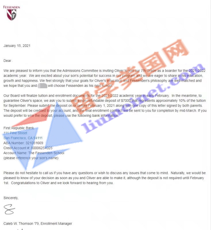 录取捷报 | 恭喜留美网Z同学被顶尖美初菲斯登中学The Fessenden School录取!
