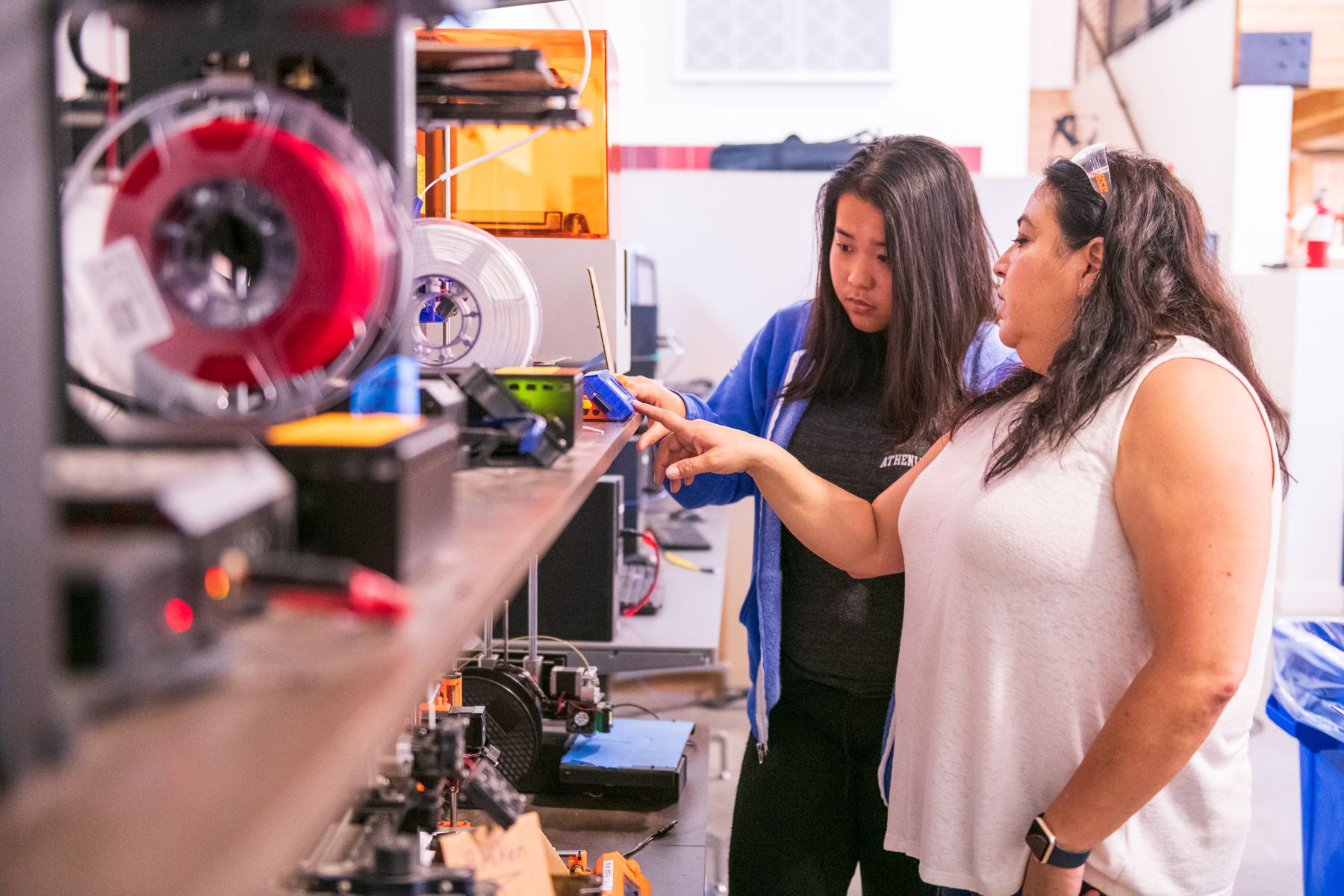 1.工程和设计:学校有自己的创客工作室,创客工作室还主持了雅典人的飞机项目——机器人技术、电动汽车项目、3D打印机、电脑控制路由器、激光切割机以及一系列工具、电子设备和其他制造设备。