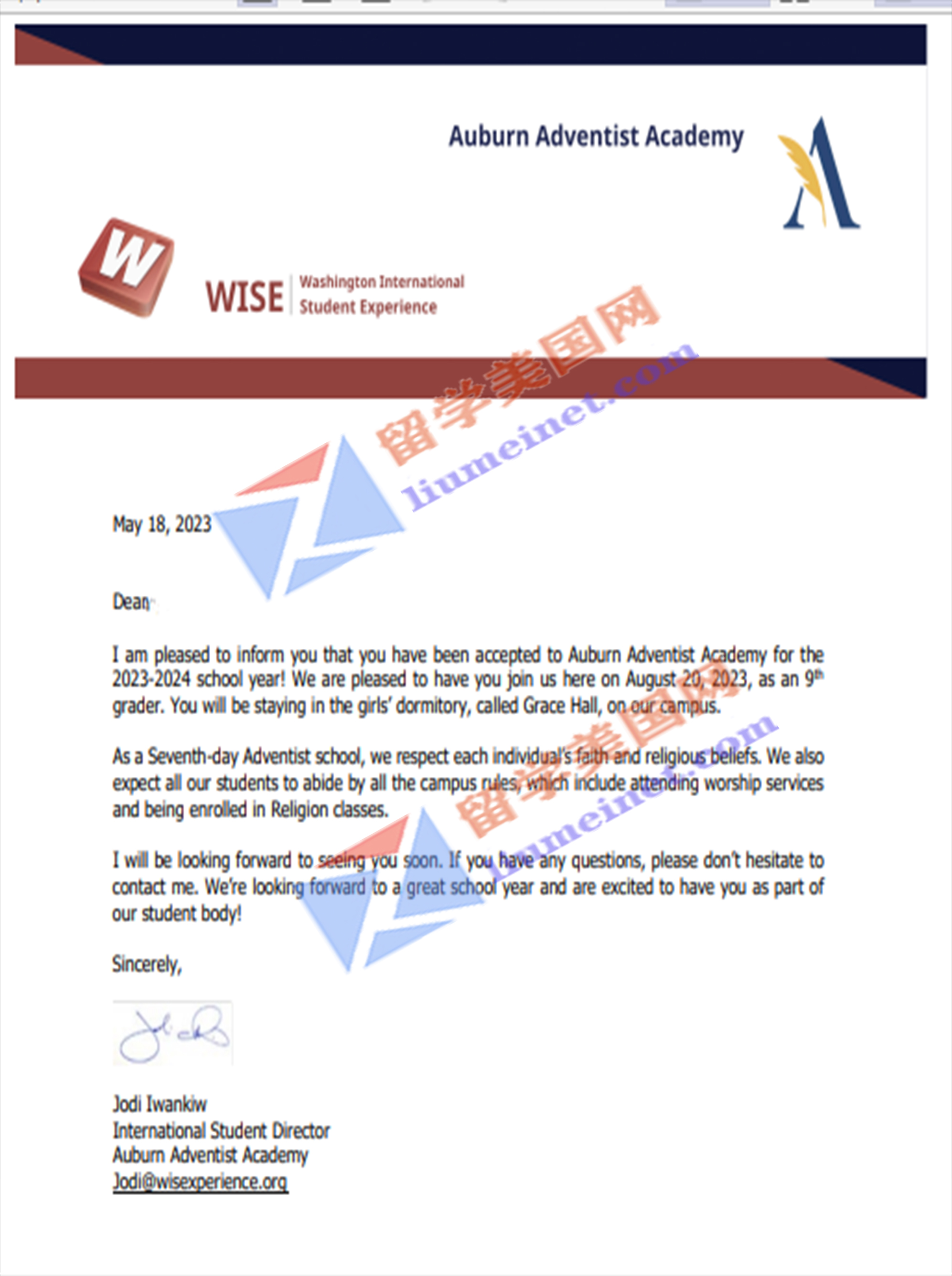 留美网喜报频传,恭喜留美网z同学斩获奥本高中Auburn Adventist Academy录取offer~!
