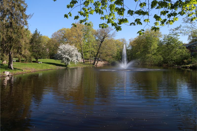 校区中有11幢主要建筑楼,围绕着一个池塘,池塘边群树环绕,草场绵延,还有大片运动场地。学校历史悠久,环境优美,设备完善,为学生提供了一个良好、纯朴的学习环境。