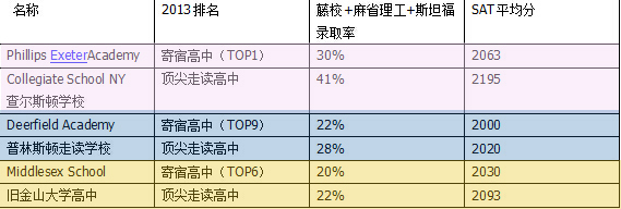 在Prepreveiw排出的2013年美国最好的私立中学排名中,NO.1的是纽约的三一学校,常春藤+麻省理工+斯坦福录取率高达42%;安多佛菲利普斯学院排在第七位,常春藤+麻省理工+斯坦福录取率是32%,Phillips Exeter Academy 藤校录取率在30%。