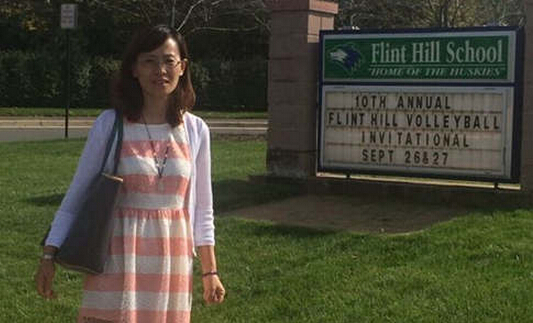 弗林特山学校位于弗吉尼亚州的fairfax富人区的中心位置,该区是美国十大富人区之一,距离华盛顿DC 10分钟的车程。石老师从DC驱车过去,很方便。
