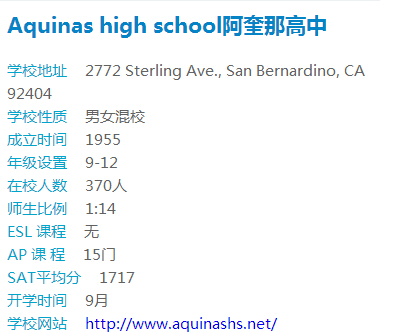 【托福50-60分推荐】阿奎那高中