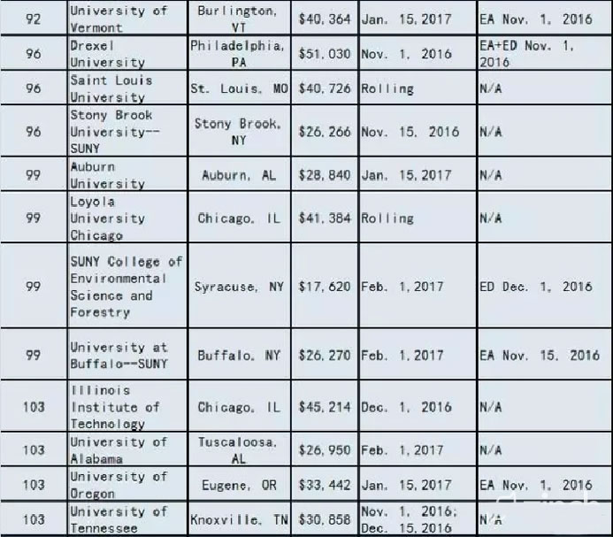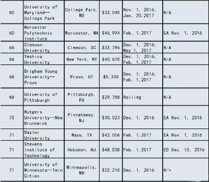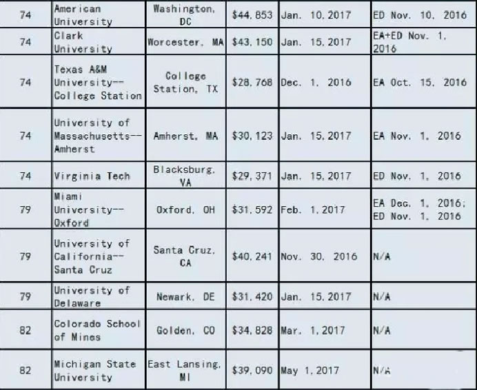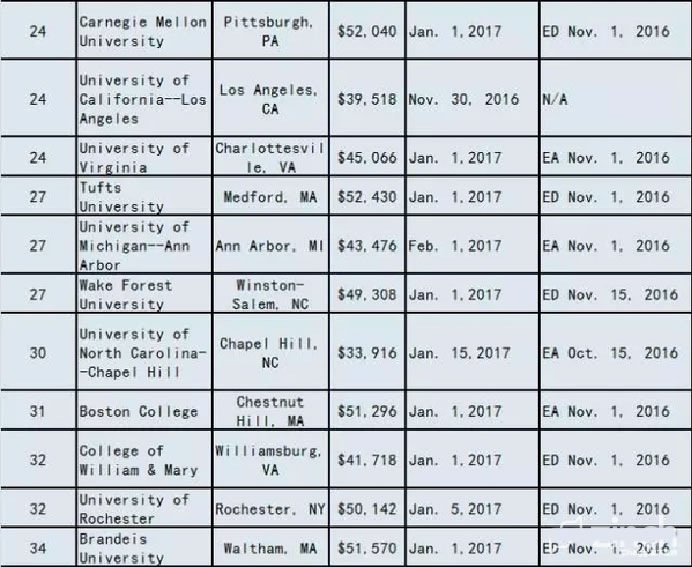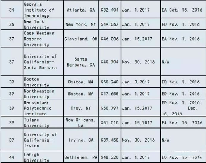 2017美国大学ED/EA/REA/RD申请截止时间