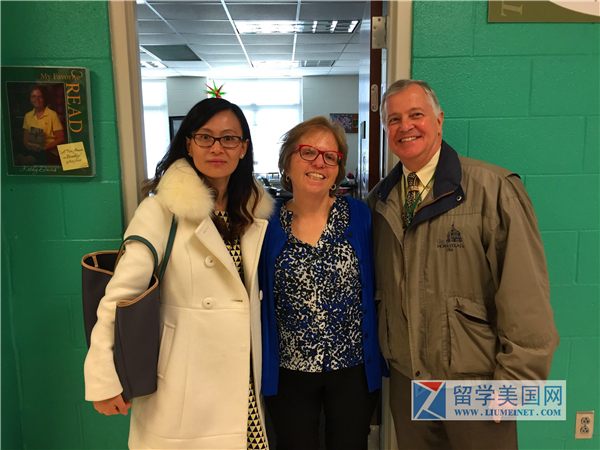 石老师通过走访格林伯勒日校,发现喜欢舞台剧表演的学生非常适合选择这所学校,学校每年会有4次舞台剧表演,40%的学生都会参与到节目当中。与石老师合影的女老师教高中部数学AP课程,已经在这所学校工作了42年,男老师是招生主任曾在大学任职30年负责招生工作,石老师从他们身上真正感受到对教育的热爱和敬业精神。