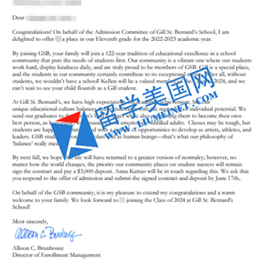 Gill St.Bernard School(吉尔圣伯纳德学校)拥有非常悠久的历史。1900年,St. Bernard’s School由Thomas A.Conover创立,这是一所为男生提供教学的学校。1934年,Elizabeth Gill在Bernardsville创办了女校Gill School,目的是为更多女生提供受教育的机会。1972年,两所学校合并,成为一所男女合校。学校注重学生的全面发展,除了让学生们在学业上获得成功,还希望学生们能够成为正直、善良和富有共情能力的公民。