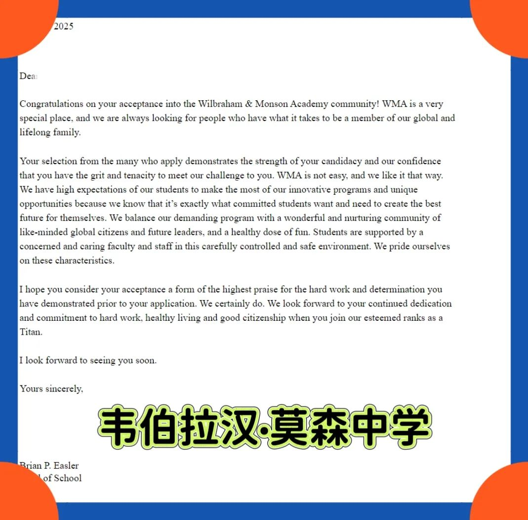 Wilbraham&Monson Academy韦伯拉汉莫森学院成立于1804年,学校位于波士顿西部的Springside,校园占地300英亩,环境优美,治安良好。该校的学术属于中等,国际生比例略高,但该校的课程非常特别,非常适合喜欢商科和领导力的学生学习。石老师曾经带学生去学校面试,学校的环境和硬件设施还是非常不错。