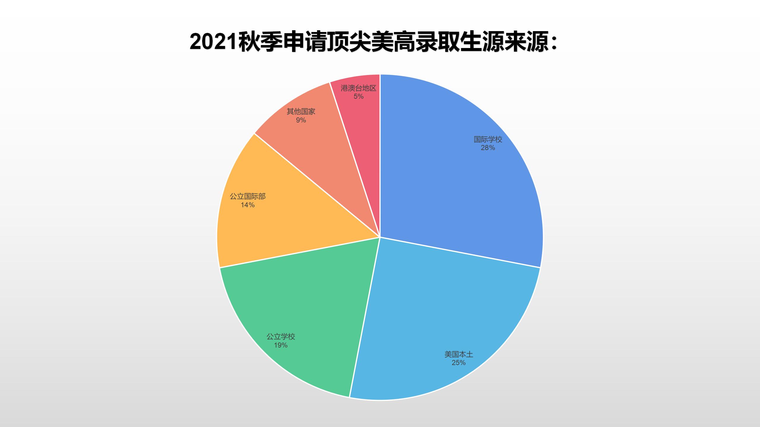 1、受疫情影响,2021秋季申请总体人数较2020稍有下降,但是来自公立高中国际部的申请数量不但没有降低反而升高,这也是为什么今年的录取榜单中公立学校国际部的学生许多收获前十顶尖美高录取的重要原因。
