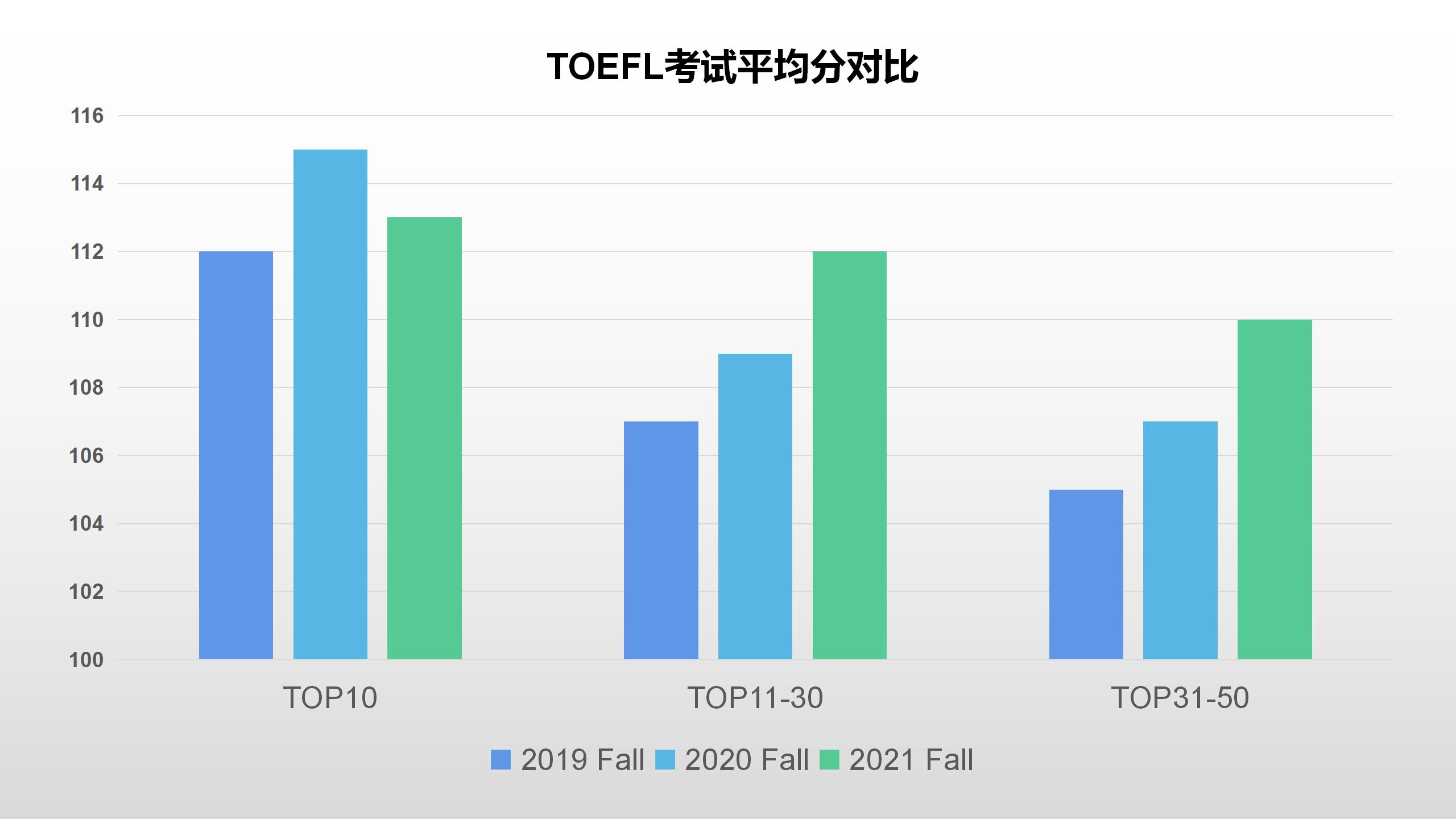 从图表中我们可以看出,TOP10的顶尖美国高中录取学生的平均托福分数都达到了110以上,可以说到了这个阶段基本无视具体分差了。