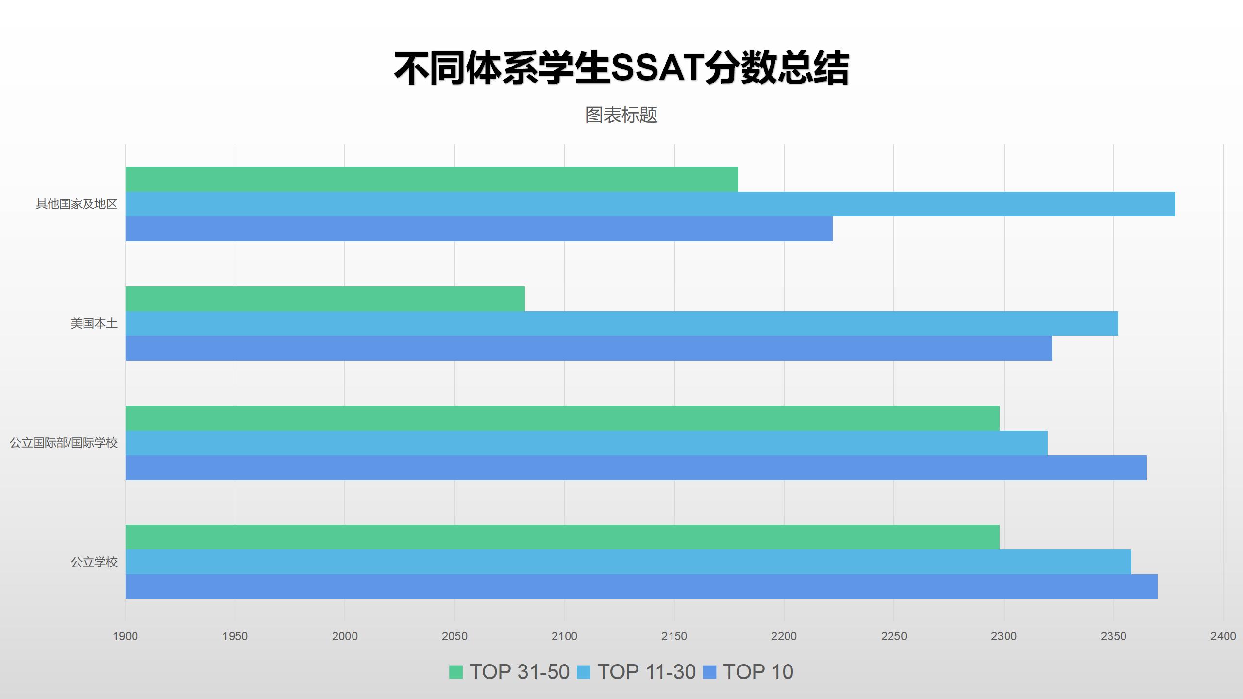 同样,针对SSAT考试我们也进行了对比分析,在申请顶尖美高的过程中,SSAT录取分数线根据学生在读院校/地区的不同,从高到低依次为: