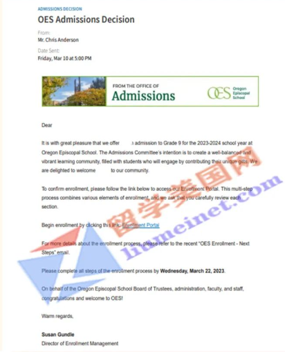 录取喜报,恭喜留美网S同学斩获俄勒冈主教中学Oregon Episcopal School录取~