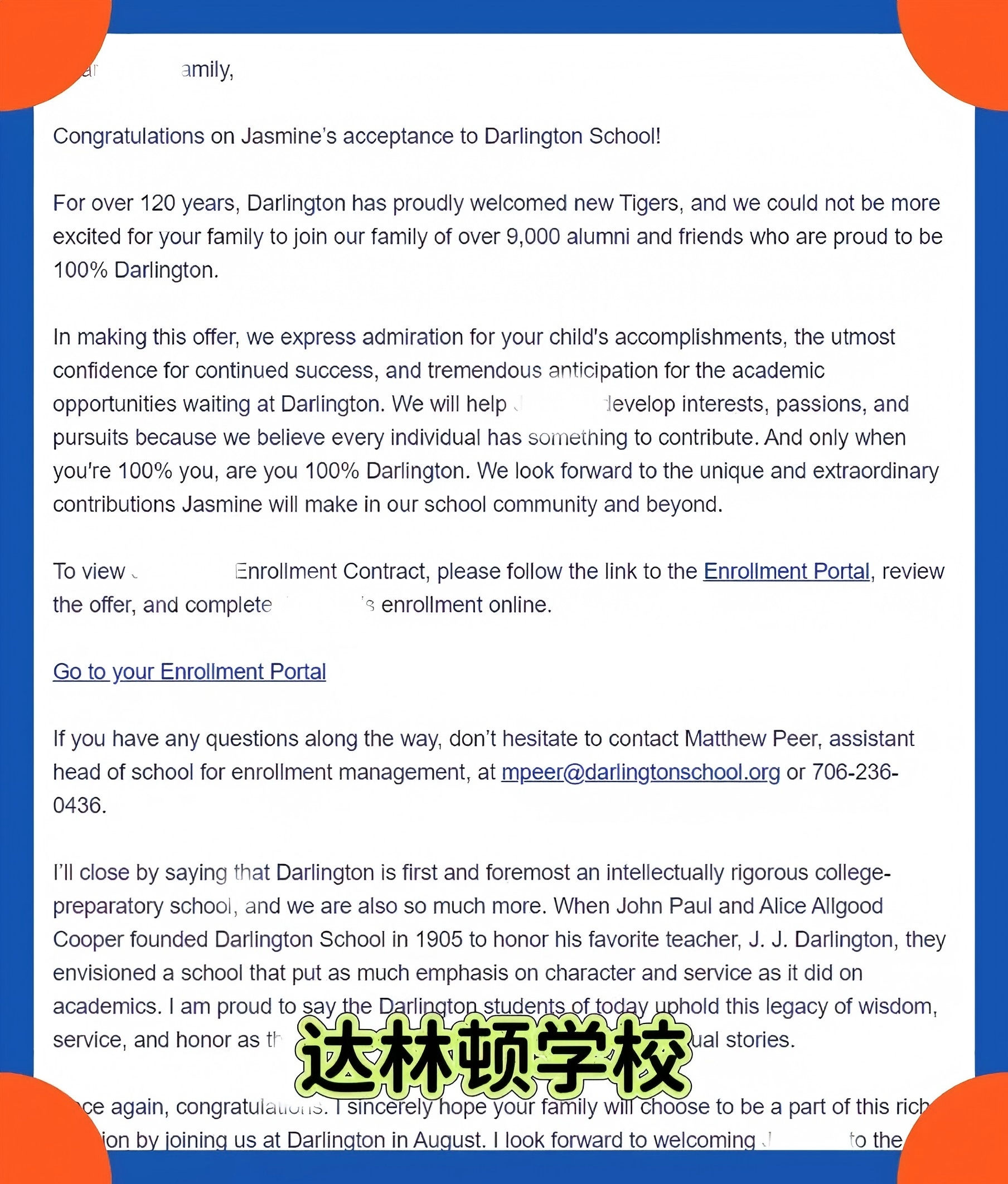 【录取喜报】恭喜留美网学子z同学斩获达林顿中学 录取offer