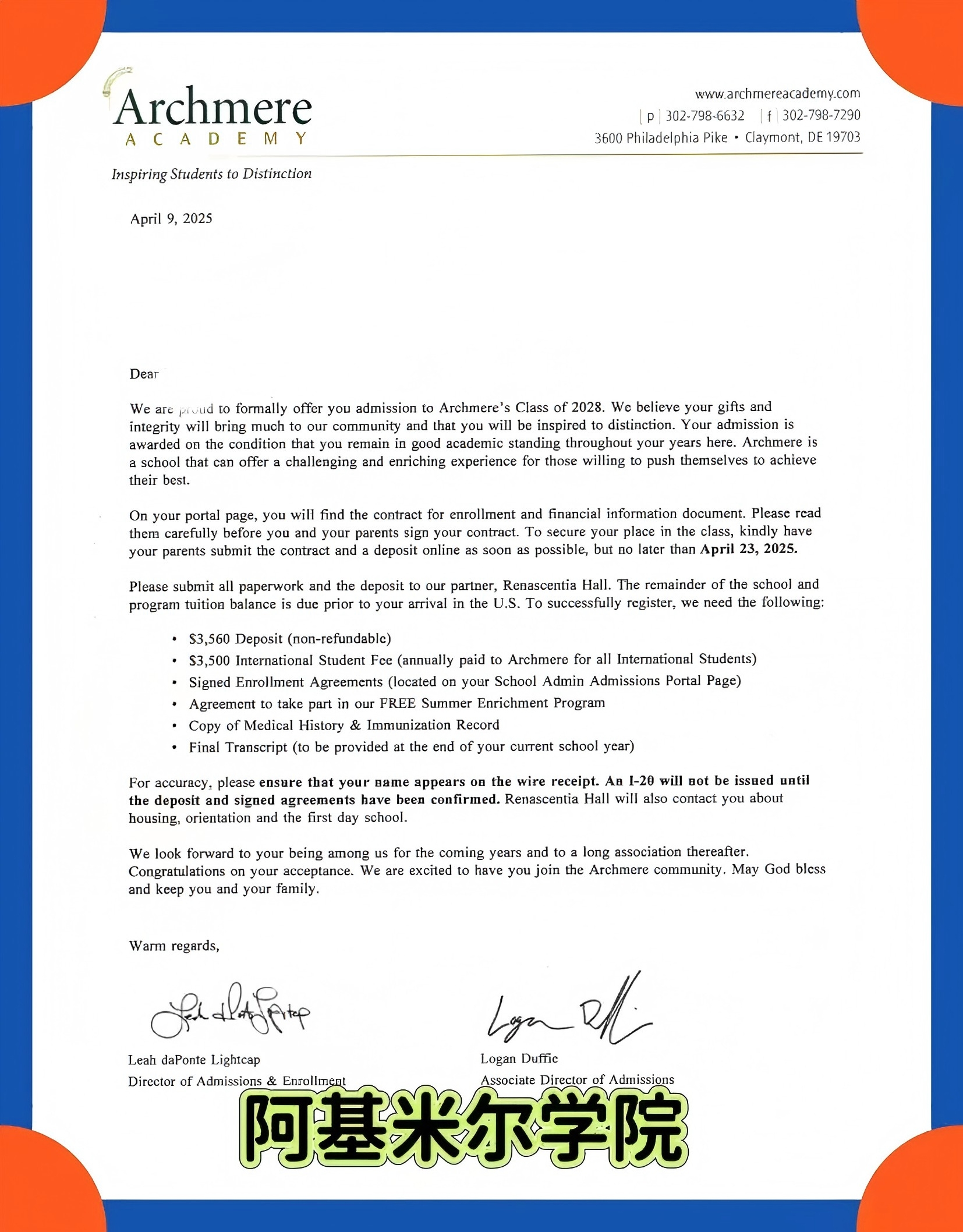 【录取喜报】恭喜留美网学子z同学斩获阿基米尔学院录取offer