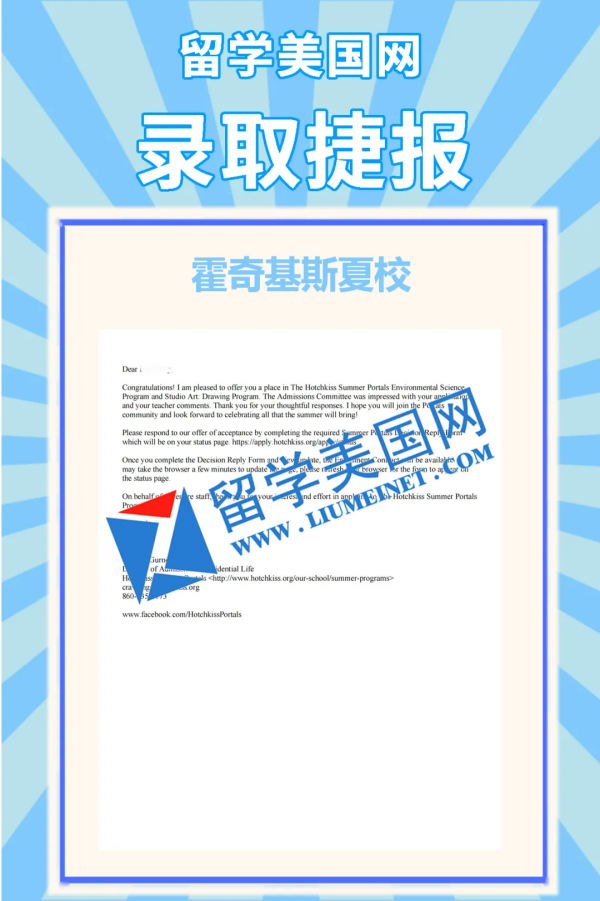 Hotchkiss成立于1891年,位于康涅狄格州Lakeville,成立之初是为培养进入耶鲁的学生,被誉为“耶鲁后花园”。霍奇基斯中学是八校联盟、十校联盟和前G20中学成员。学校占地827英亩,毗邻纽约与波士顿。校园内拥有康州最深的天然湖泊、200英亩森林及高尔夫球场,是名副其实的“自然与学术交融的乌托邦”。