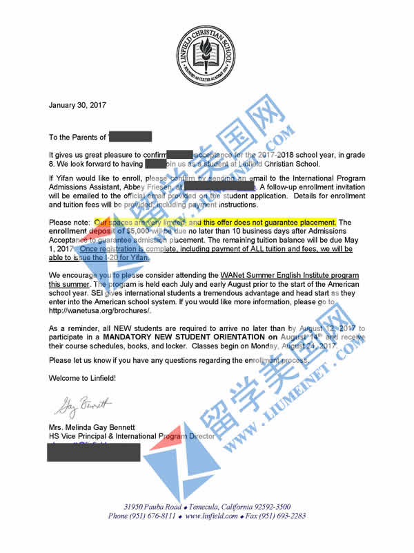 林菲尔德基督教学校Linfield Christian School 线下面试会即将开始,相信很多想要申请美高的家长都想要有这样的机会,孩子足不出户就可以接触到美国学校招生官,而且还可以一对一的和招生官面对面的进行深入沟通交流。这无疑给了很多孩子面试的机会。那么这么好的机会相信很多家长也都愿意让孩子尝试,还在等什么?就在12月6日,赶紧联系我们预约吧! 招生官: Mrs. Gay Bennett 葛伊·本妮特⼥⼠现任南加州特梅库拉市林菲尔德基督教学校⾼中部副校⻓兼国际项⽬主任,有超过39年的美国公⽴与私⽴学校教育经验。在本妮特⼥⼠的带领下,许多国际学⽣以优异成绩毕业,进⼊美国顶尖⼤学 (如斯坦福⼤学、加州⼤学伯克利分校、加州⼤学洛杉矶分校和埃默⾥⼤学)继续深造,并成为林菲尔德基督教学校“狮⼦”⼤家庭的终⾝成员。 面试会预约通道: 12月6日 上午9:30 迈润肯留学 林菲尔德基督教学校Linfield Christian School 面试会即将开始! 名额有限,预报从速! 联系我们的顾问老师: 电话:15011066813 13910531929 微信:liumeinet2014 适合参加的家庭: 计划申请美高(7-12 年级)的学生及家长,尤其瞄准 2026Fall 申请的家庭。 林菲尔德基督教学校Linfield Christian School介绍: 石老师曾走访考察过该校,林菲尔德基督学校是一所私立走读混合学校,成立于1936年,占地105英亩,学校位于洛杉矶和圣地亚哥之间的小城特美谷,被葡萄园酒庄,高尔夫球场环绕,近距离抵达海滩及群山。学校地理位置便利,距圣地亚哥57英⾥, 洛杉矶76英⾥。 学校注重培养学生在学术和专业领域成功的潜能,工程项目格外突出。此外,学校体育项目强大,多次获得联盟和州冠军。学校人文关怀特别好,充满关爱、关系密切,为学生提供全面的大学预科教育,培养和激励学生爱人如己,增长知识和技能。学校的培养目标是通过个人的自律和尊重他人来塑造良好的品格,并透过他们的品格和领导能力来改变世界。 迈润肯成功案例分享: 学校优势: 1.STEM项⽬:学校设STEM项⽬,为学⽣提供计算机实验室,3D打印机,乐⾼机器⼈等教学设备。 2.丰富的体育项⽬:学校开设丰富的体育项⽬,建马术项⽬是学校的⼀⼤特⾊; 3.艺术项⽬:学校开设丰富的艺术项⽬,包括电影制作,学校乐队曾到澳⼤利亚参加⽐赛。 4.志愿者活动:学校每年安排学⽣到南美、⾮洲或者东南亚参加志愿者活动,为当地的孩⼦提供帮助; 5.优秀学⽣评选:学校每个⽉都会评选"优秀学⽣",这些学⽣都因为⾃⼰的优秀表现⽽获得表彰。 特色项目: 1.海外志愿服务与游学项⽬ 学校每年都会选拔学⽣与教职员⼯赴海外进⾏志愿者活动,在海地的学校⽀教,帮助墨西哥贫困家庭重建房屋。学⽣也可⾃⾏申请到欧洲等地区进行游学。 2.STEM项⽬ 林菲尔德基督学校重视学⽣在STEM⽅⾯的发展,从低年级开设STEM课程和项⽬。当完成指定项⽬的学习后,学⽣将获得对应STEM证书。学校的STEM项⽬开设了机器⼈、⼯程学,⼯程学原理,计算机科学等课程。 3.优质师资和升学指导 学校为私⽴的⼤学学前学校,课程丰富,拥有优质师资。学校的升学指导办公室每年都会组织家长会,对9-12年级的学⽣家长进⾏信息传递与指导建议。学校也会举办各个⾼等院校的宣讲会。 4.Project Lead the way 学校针对⼯程学与⽣物医学开设专业课程,以供对这两个专业感兴趣的学⽣进⾏项⽬学习和完成相应项⽬研究。 5.在线选修课程丰富 为了给学⽣提供更多深度学习和扩⼤兴趣范围的机会,学校开设了部分付费课外学科。⽬前的选项包括:艺术史与批评、创意摄影、批判性思维与学习技能、数字信息技术、法医学、编程基础、⽹⻚设计基础、新闻学、法律研究、领导⼒技能培养、世界⾳乐、个⼈与家庭财务、⼼理学I、社交媒体I、社会学、⽤⼾界⾯设计以及世界宗教。 毕业生走向: 林菲尔德基督学校以⾼名校录取率⽽闻名,众多学⼦进⼊世界顶级名校,其中不乏国际学⽣和中国学⽣。部分学生毕业走向为:普林斯顿大学、杜克大学、加州大学伯克利分校、哈佛大学、霍普金斯大学、加州大学洛杉矶分校、斯坦福大学、康奈尔大学、莱斯大学、耶鲁大学、哥伦比亚大学、范德堡大学、密西根大学、加州大学圣地亚哥分校、加州大学尔湾分校、乔治城大学、纽约大学等。 申请要求 托福或多邻国,成绩单及推荐信等 名额有限,先到先得,感兴趣的家长抓紧时间联系我们预约~