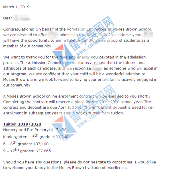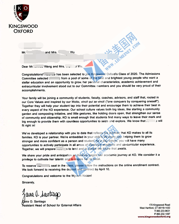 补录捷报!恭喜留美网L同学补录到劳伦斯中学!