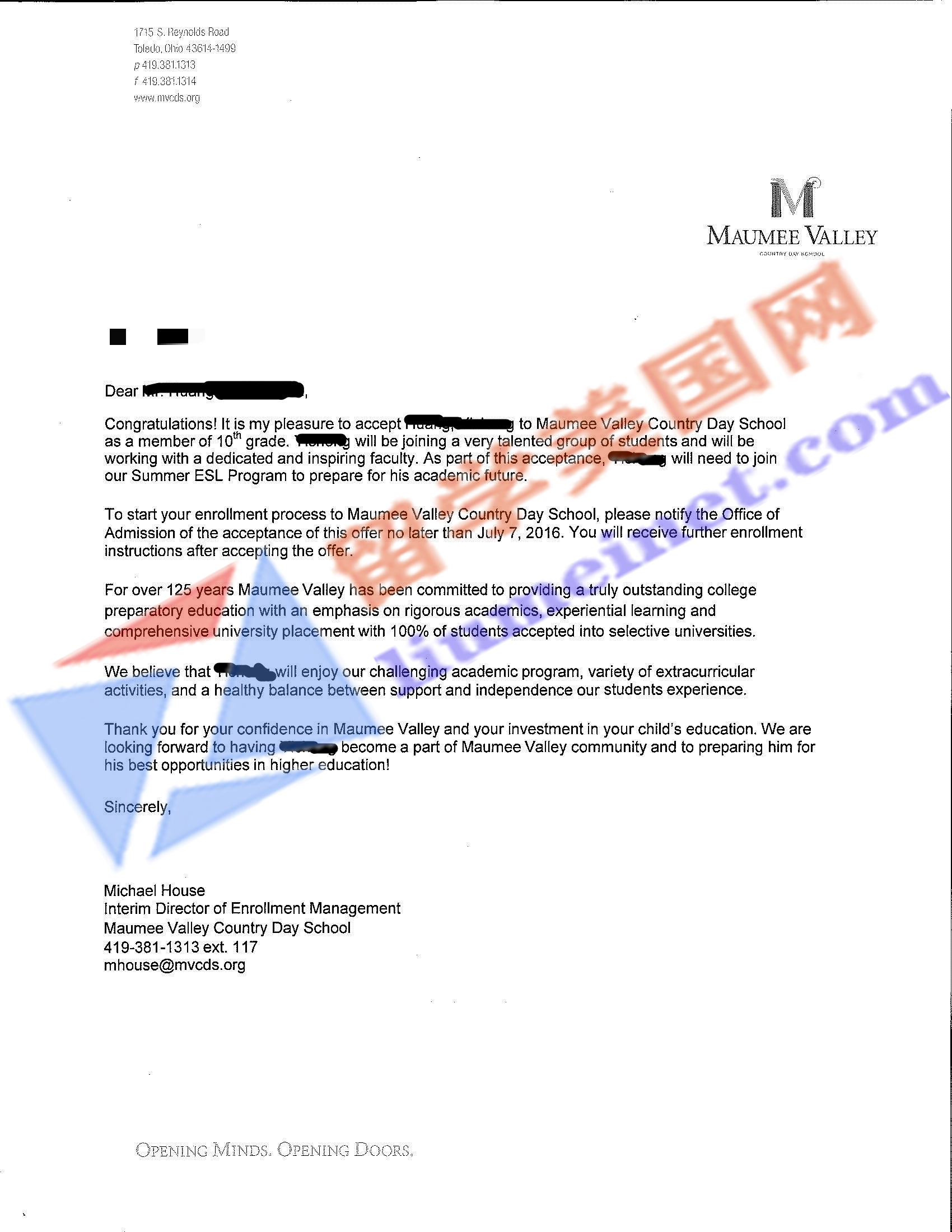 Maumee Valley Country Day School建校于1884年,位于俄亥俄州的托莱多市,气候四季分明,平均气温与北京相似,相对较湿润。Maumee Valley是俄亥俄州西北部最好的学校之一,是托莱多市最好的私立高中。校园75英亩,国际学生60人。