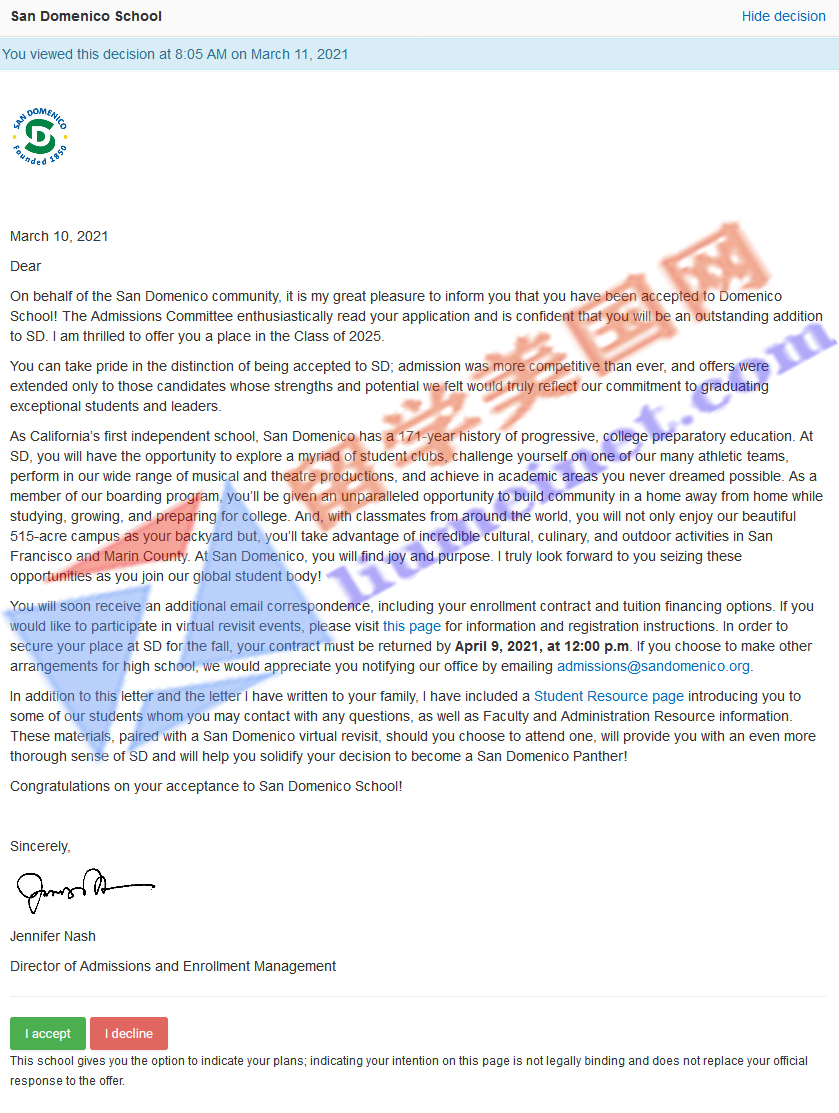 San Domenico位于加州旧金山Marin马林郡,之前是女校,2015年开始招收9年级男生。学校不仅鼓励学生们学习,还会让学生们明白他们是为何学习。学校价值观的教育加上优秀教师的引导,最终让学生成为伟大的人。学校硬件设施不错,但是国际生比例略高。