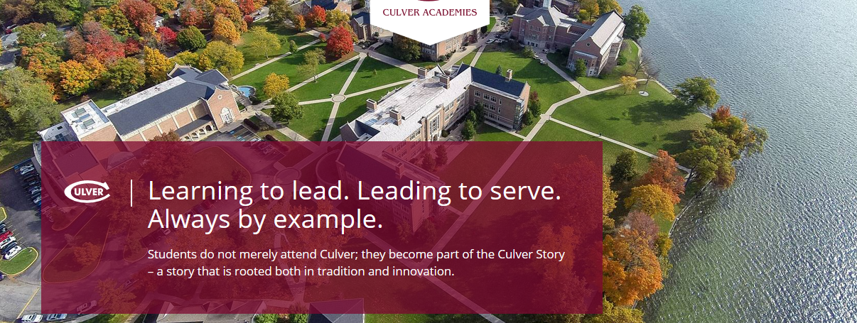 Culver Academies位于印地安那州西北部的Culver小镇上,周边大学有圣母大学和普渡大学西拉法叶分校。学校的马术会所是全美中学中最大的,学校的马术队会参加总统的就职典礼。学校课程设置非常丰富,提供100多门选修课程资源;课外活动方面,提供67项课外活动和俱乐部。学校体育方面最吸引人的便是马场以及帆船用湖。学校骑兵人手一匹马,豪华的马场内提供马术课以及马球运动,吸引了一批批爱马家庭的孩子。