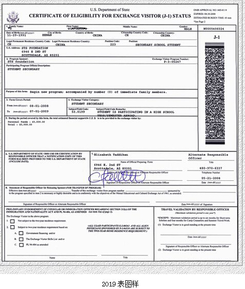 J1签证即交流访问签证,是交换生所持签证种类,在美居留期限不超过一年且有附加的限制性条款,即学生交流期满,必须回国。在出入境过程中此签证需要与美国国务院颁发的DS 2019表格共用。学生可在DS 2019表注明的项目开始日期前4个月向当地美国领事馆签证处申请。可在2019表注明项目开始日期前45天入境美国。