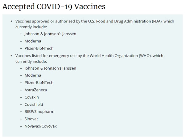 2022年最新美国疫苗要求: