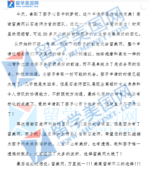【低分高录,比比皆是】低分高录,成功逆袭斩获优质美国高中的案例比比皆是,留美网为了目标都是竭尽全力去争取、全程跟进追求成功。