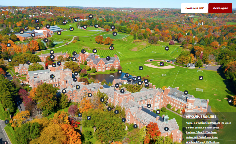 【地理位置】学校坐落于美国康涅狄格州的西部小镇沃特敦(Watertown)。占地 226 英亩的校园,环境优美宁静,为学生提供了理想的学习与生活空间。这里距离 Bradley 国际机场大约 55 英里,到纽约为 90 英里,和波士顿之间有 120 英里的距离,交通便利,方便学生往返学校与城市之间,无论是参与文化活动还是接受外部资源支持都极为便捷。