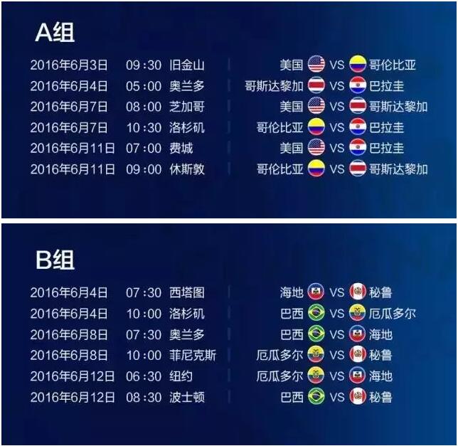 美洲杯赛程表