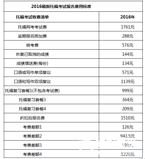 2016美国留学托福考试最新收费标准
