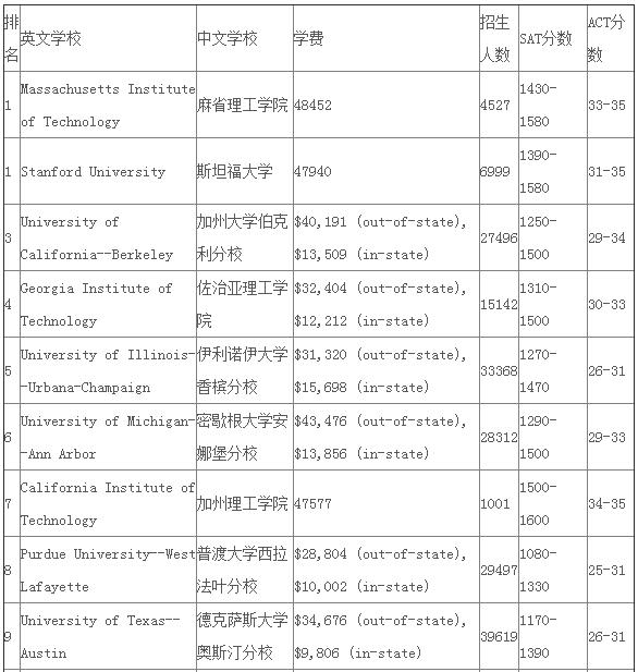2017年USnews美国大学电子通信工程本科排名(含博士)