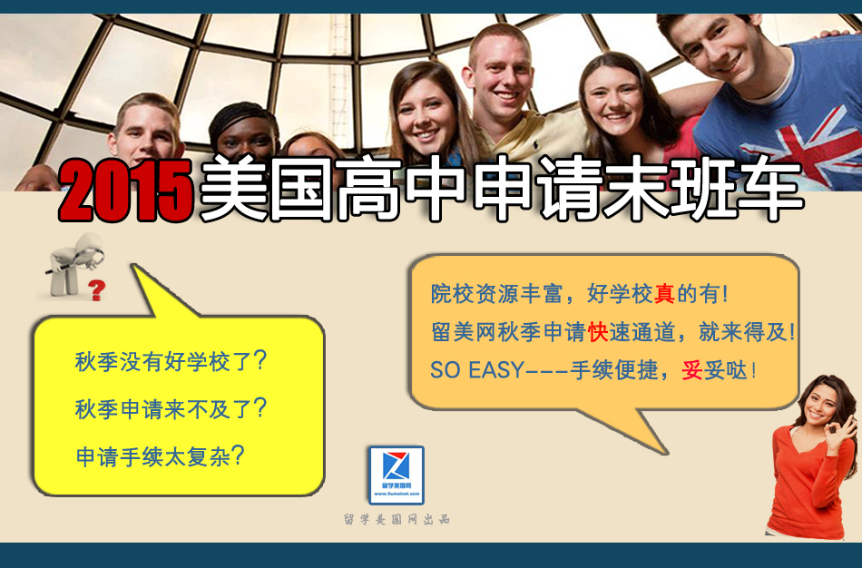 目前留学美国网共整理出50-80所秋季还在招申的美国优质高中,学校包括寄宿高中、走读高中;顶尖高中及开设ESL课程的优质高中供大家选择,尽快与我们联系,告诉我们您的需求,全国免费热线:400-000-7805