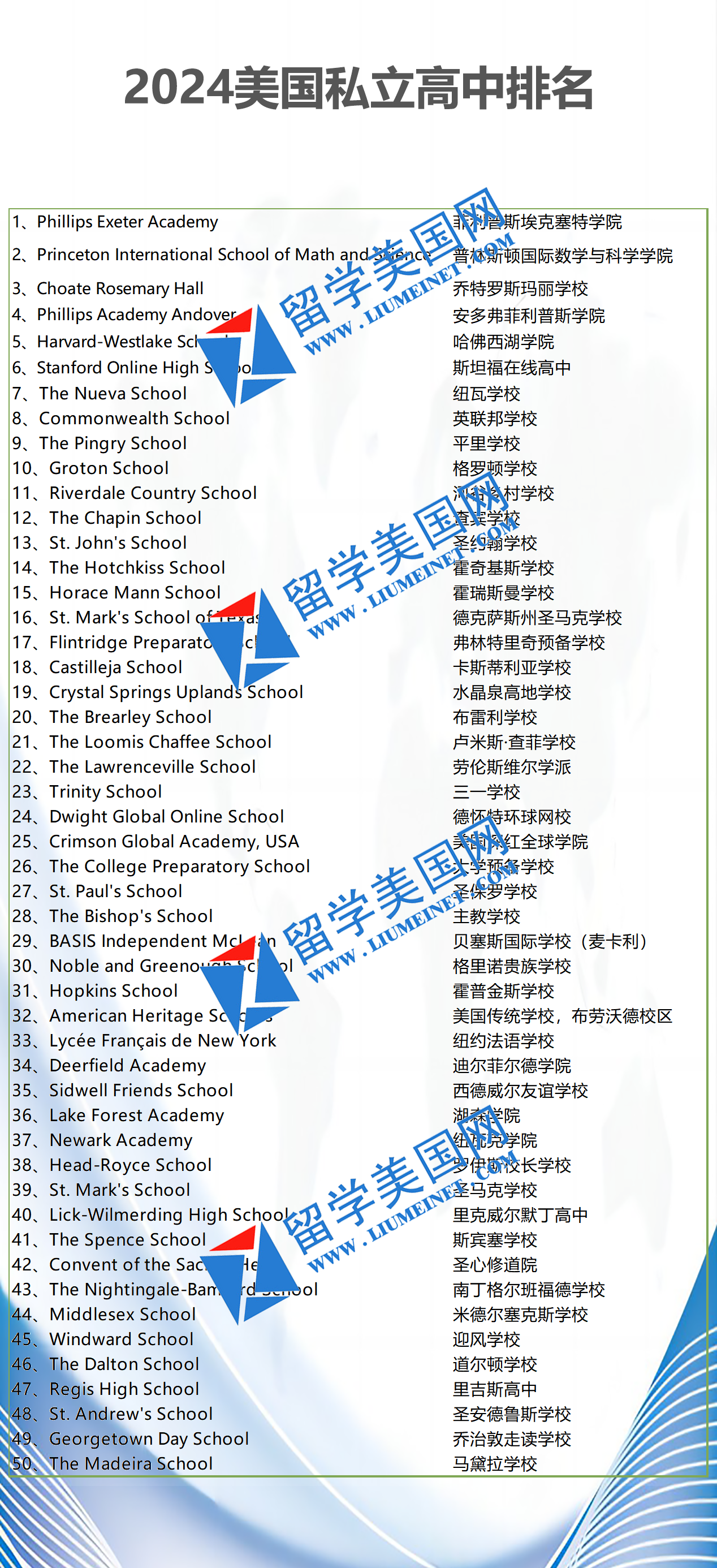 二、2024美国私立高中排名TOP50: