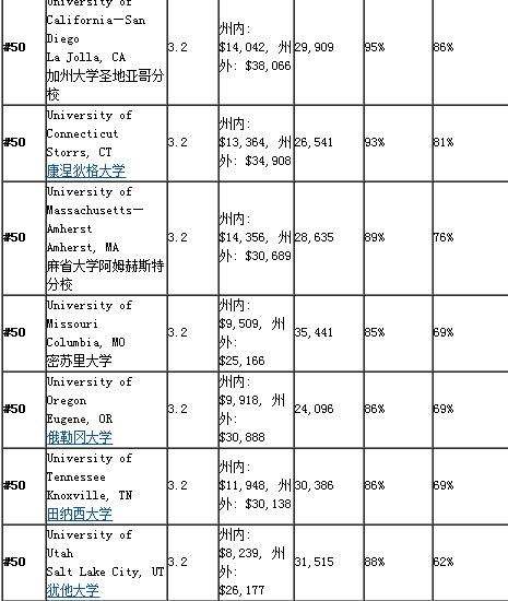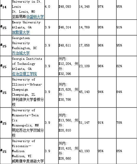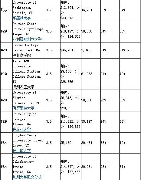 2016年美国本科商学院排名50