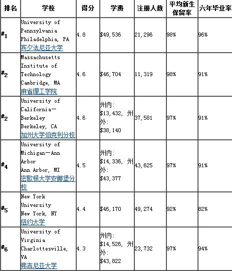 2016年美国综合大学排名(USNEWS)