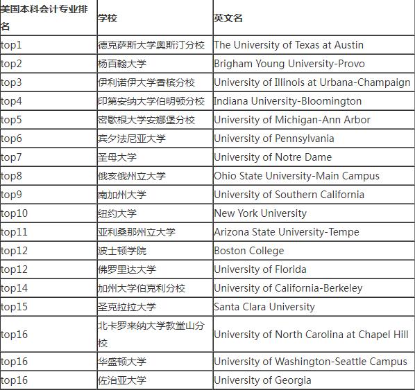 2022年美国会计专业排名!德克萨斯大学奥斯汀分校排名第一!